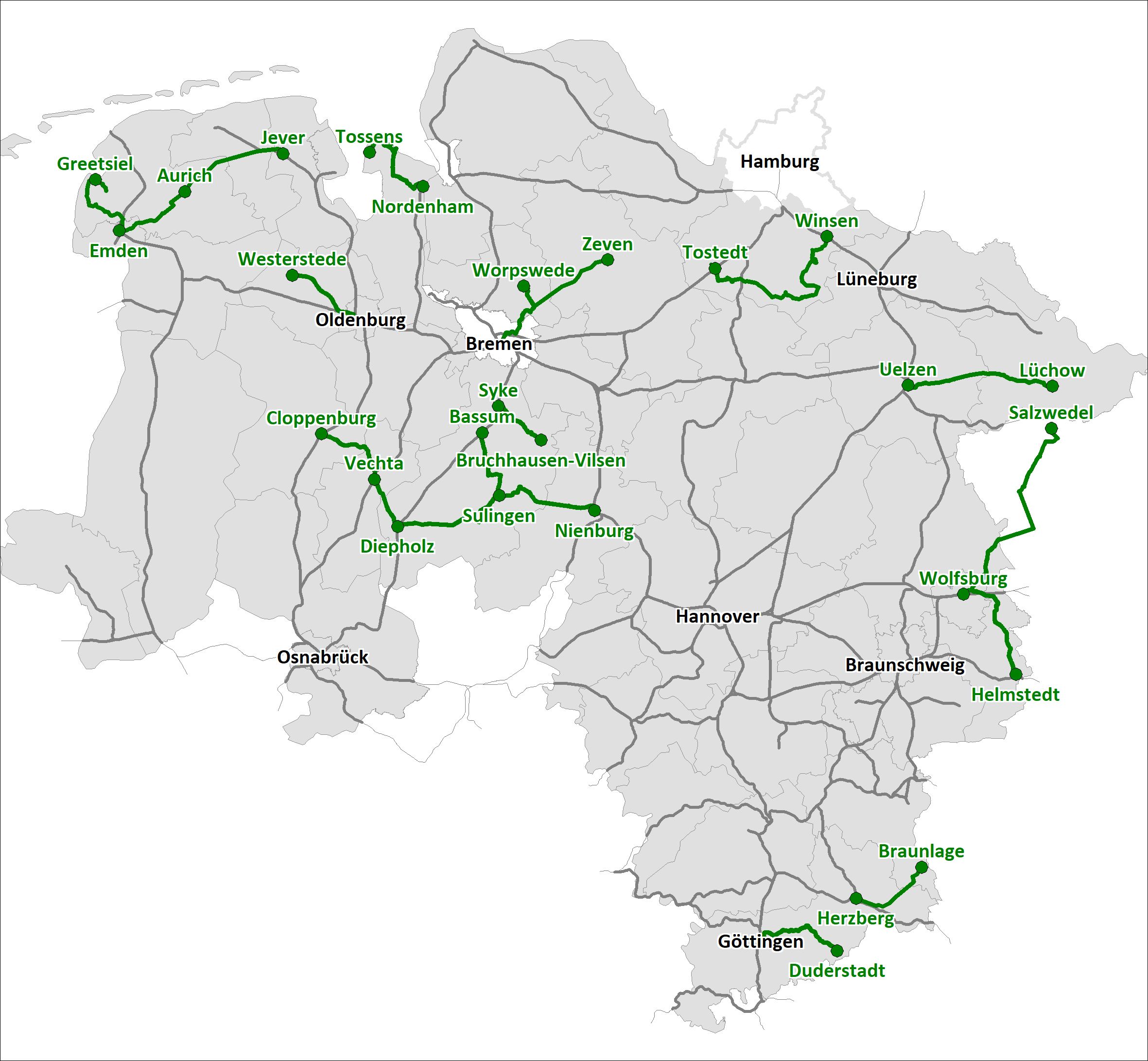 Das Land Niedersachsen fördert den Betrieb von Buslinien zur Anbindung von Orten mit besonderen Aufkommensschwerpunkten