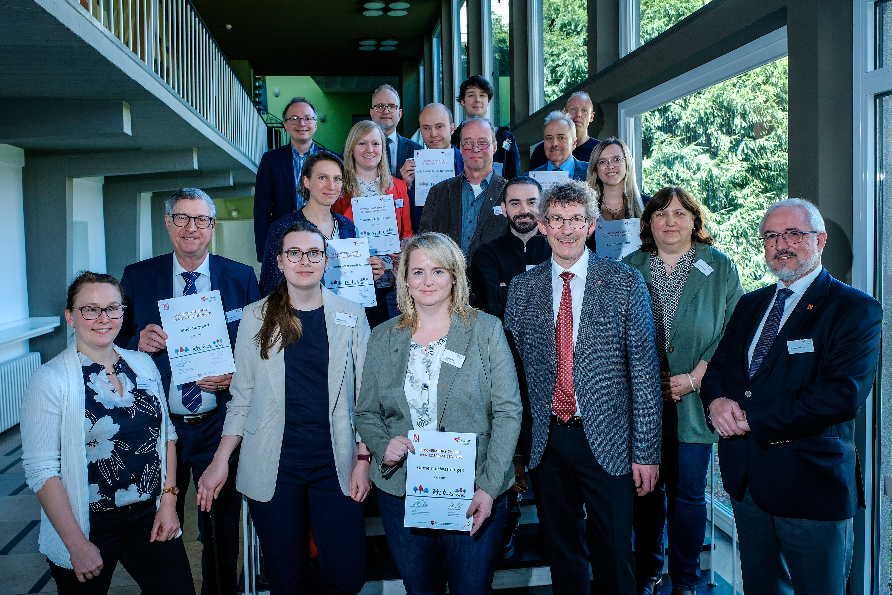 Diese Kommunen sind dabei: Stadt Achim, Gemeinde Algermissen, Stadt Buchholz i.d.N., Stadt Burgdorf, Stadt Geestland, Samtgemeinde Hesel, Gemeinde Wathlingen, Gemeinde Westoverledingen, Gemeinde Wietmarschen und die Stadt Wolfsburg. Etwa ein Fünftel aller Wege werde zu Fuß zurückgelegt, sagte Frank Doods, Staatssekretär im Niedersächsischen Verkehrsministerium. „Es wird immer beliebter, einfach mal zu gehen und das Auto stehen zu lassen. Knapp jeder vierte Weg wird ausschließlich zu Fuß zurückgelegt. In Niedersachsen ist die Zahl dieser Wege von 2017 bis 2023 um sieben Prozentpunkte gestiegen. Insbesondere die Kommunen haben einen großen Einfluss auf die Attraktivität des Straßenbildes – und damit auf den Wohlfühlfaktor der Fußgänger. Daher fördern wir auch in diesem Jahr Fußverkehrs-Checks in zehn Kommunen, um ihnen im wahrsten Sinne des Wortes Beinfreiheit zu geben.“